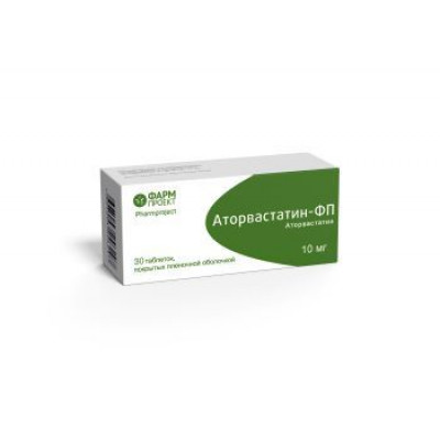АТОРВАСТАТИН-ФП 10МГ. №30 ТАБ. П/П/О /ФАРМПРОЕКТ/