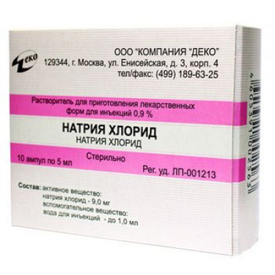 НАТРИЯ ХЛОРИД 0,9% 5МЛ. №10 Р-Р Д/ИН. АМП. /ДЕКО/