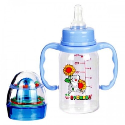 БУСИНКА БУТЫЛОЧКА ПЛАСТ. СИЛИК. СОСКА+ПОГРЕМ. С РУЧКАМИ 125/150МЛ. /АРТ.1115/