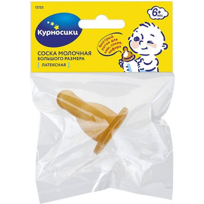 Латексная соска большого размера Курносики разработана с учетом возраста и физиологических особенностей младенцев от 6 месяцев. Оптимальна для густого питания: каш, соков, кисломолочных продуктов. Соска изготовлена из латекса – натурального, природного материала на основе каучука. Отверстие оптимально для густого питания – кисломолочных продуктов, каш, соков. Соска классической формы всегда занимает правильное положение во рту ребенка. Соску разрешено стерилизовать различными способами.