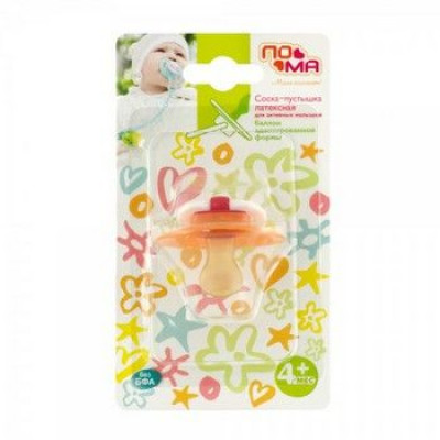 Пустышка адаптированной формы для детей от 4-х месяцев. Латексная пустышка учитывает анатомические и возрастные особенности малыша. Отверстия на нагубнике предотвращают раздражение нежной кожи малыша. Пустышка изготовлена из прочного, безопасного пластика (полипропилен), баллон изготовлен из латекса. Строго соблюдайте инструкции по эксплуатации на упаковках каждого изделия.