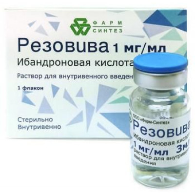 Гиперчувствительность к ибандроновой кислоте или другим компонентам препарата. Гипокальциемия. До начала применения препарата Резовива так же, как при назначении всех бисфосфонатов, используемых для лечения остеопороза, следует устранить гипокальциемию. Нарушение функции почек тяжелой степени тяжести (креатинин сыворотки крови >200 мкмоль/л (2,3 мг/дл) или клиренс креатинина