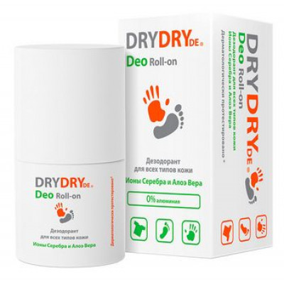DRYDRYDE Deo (ДРАЙДРАЙде Део) с Ионами Серебра и Алоэ Вера предназначен специально для тех, кто ищет эффективный дезодорант для тела. Ионы серебра блокируют размножение бактерий, исключая появление неприятного запаха пота, тем самым обеспечивая ощущение свежести и комфорта в течение всего дня. Благодаря натуральным компонентам, входящим в состав средства, кожа после нанесения становится нежной, увлажненной и ухоженной, а Алоэ Вера дополнительно предохраняет ее от раздражения. Подходит мужчинам и женщинам. 0% алюминия. Не пачкает одежду. Не имеет ограничений по частоте применений.